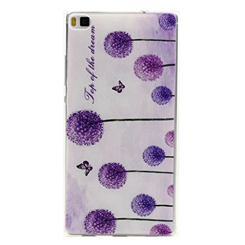 Huawei P8 ケース カバー UNEXTATI 高品質 超薄型 高級 TPU 保護カバー 液晶保護 衝撃吸収 全面保護 耐汚れ 柔軟 脱着簡単 落下防止 防塵 耐久 透明 Huawei P8 用 Case Cover (P7 紫色)