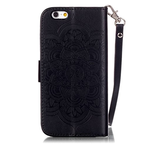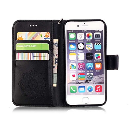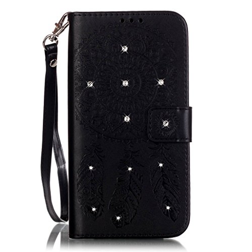 UNEXTATI iPhone 6 Plus / iPhone 6s Plus ケース ダイヤモンド 手帳型ケース カバー カード収納 ストラップ 付き Apple iPhone6 Plus / iPhone6s Plus 用 Case Cover (ブラック)