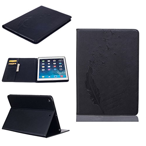 UNEXTATI iPad Air iPad 5 ケース 高品質 PUレザー 手帳型ケース 保護カバー カード収納 液晶保護 防塵 Apple iPad Air iPad 5 用 Case Cover (ブラック)