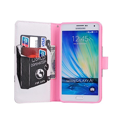 Samsung Galaxy A7 2015 ケース UNEXTATI 高品質 PUレザー 手帳型 ケース 財布型 ウォレット型 衝撃吸収 保護カバー カード収納 ホルダー 横開 スタンド機能 マグネット開閉式 シリコンカバー 液晶保護 落下防止 防塵 高級 合皮レザー Samsung Galaxy A7 2015 用 Case Cover (P4 ブラック)