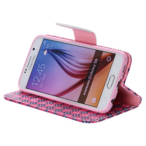 UNEXTATI Galaxy S6 Edge ケース 高品質 合皮レザーケース マグネット 全面保護 手帳型 ケース カバー カードホルダー 付き スタンド 防塵 防水 Samsung Galaxy S6 Edgeケース Case (P11 ピンク)