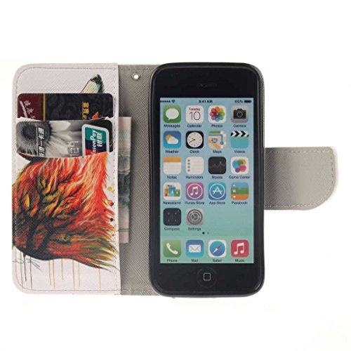 iPhone 5C ケース, UNEXTATI 手帳型ケース, Apple iPhone 5C ケース カバー, 高品質 PUレザー 手帳型 ウォレット型 財布型 保護カバー カード収納 スタンド機能 マグネット式 (P8 ホワイト)