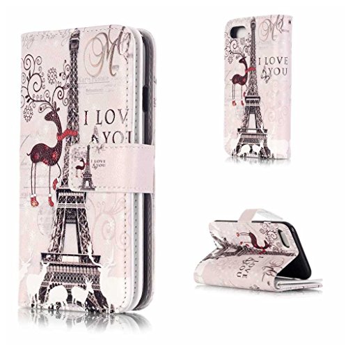 UNEXTATI iPhone 7 ケース 高品質 PUレザー 手帳型ケース 保護カバー カード収納 液晶保護 防塵 Apple iPhone7 用 Case Cover (P4 ホワイト)