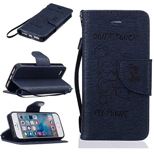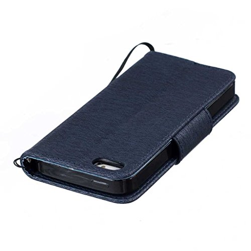 iPhone SE / iPhone 5 / 5s ケース UNEXTATI 手帳型ケース 液晶保護 カバー カード収納 ストラップ 付き Apple iPhoneSE / iPhone5 / 5s 用 高品質 PUレザー ケース Case Cover (P2 ブルー)