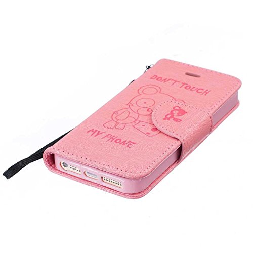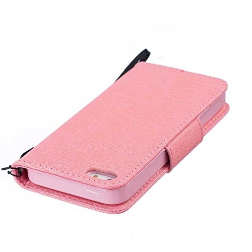 iPhone SE / iPhone 5 / 5s ケース UNEXTATI 手帳型ケース 液晶保護 カバー カード収納 ストラップ 付き Apple iPhoneSE / iPhone5 / 5s 用 高品質 PUレザー ケース Case Cover (P1 ピンク)