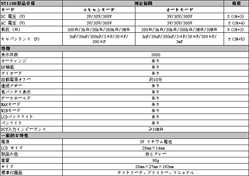 UT118ペン型デジタルマルチメータは、3000カウント機能を持つ、高精度高性能マルチメータICを中心とした回路設計。測定パラメーター:AC / DC 電圧、EF機能、抵抗、ダイオード、導通、容量。また二重絶縁保護付き。