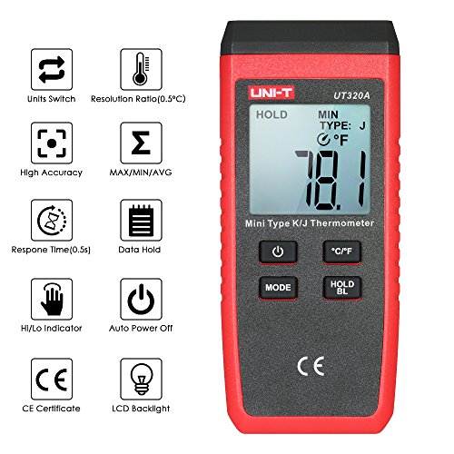 UNI-T デジタル温度計 熱電対センサー 1チャンネル LCDデジタル 温度計タイプ K/Jタイプ熱電対センサー -50〜1300℃ データ保持機能 UT320A UT320D