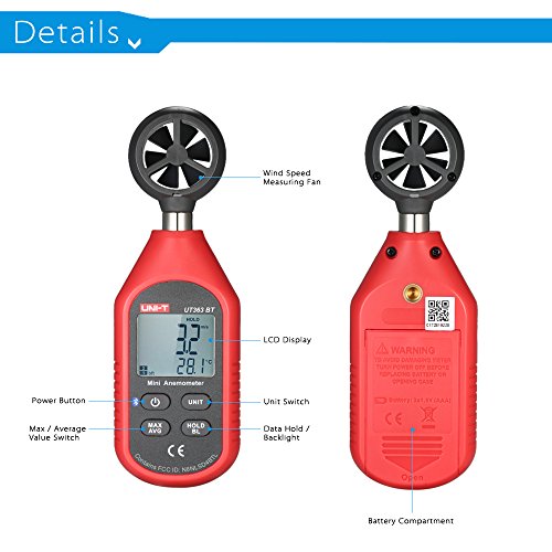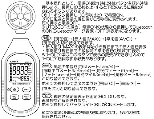UNI-T 小型デジタル風速計 最大30m/s UT363BT(スマホBluetooth接続可)