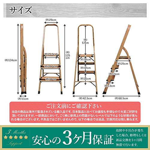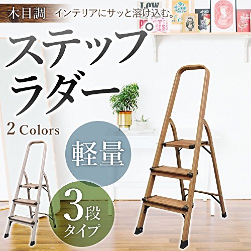 UP STORE 木目調 ステップラダー 折りたたみ 脚立 アルミ 軽量 美しい木目デザイン インテリアとしても (ナチュナルブラウン, 3段)