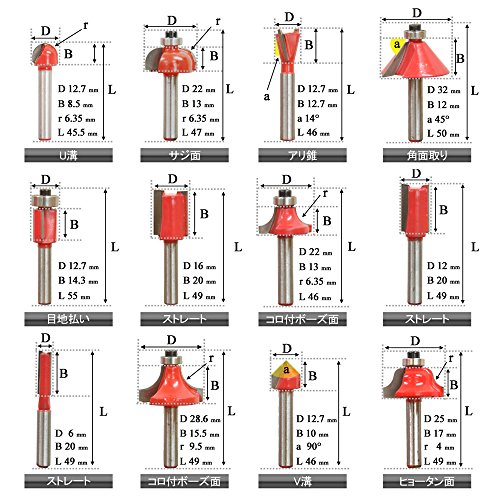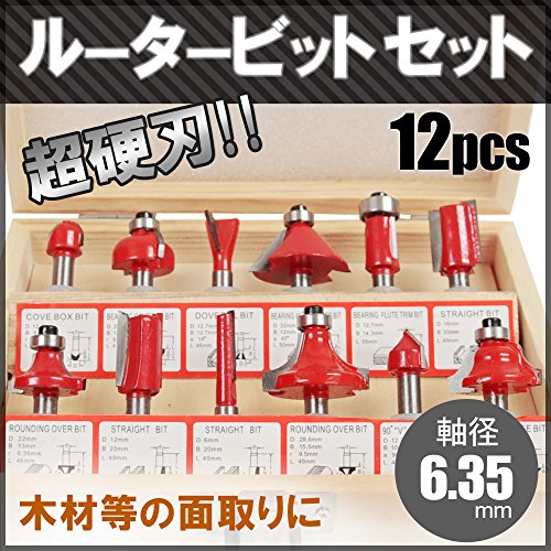 UP STORE 超硬刃 ルータービット 12本 セット 木製ケース付き トリマービット