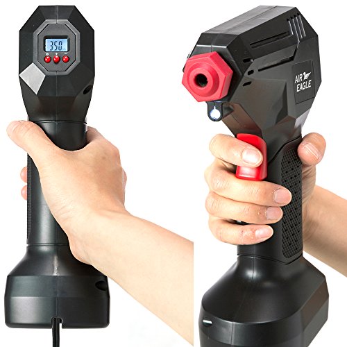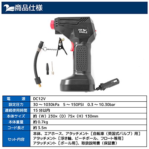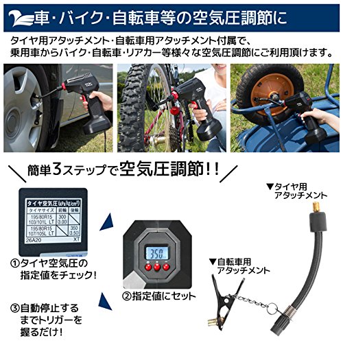 UP STORE 液晶付き DCコンプレッサー 車のタイヤ はもちろん 自転車 浮き輪 プール も 英式/米式 バルブ対応 収納袋付き 日本語説明書 国内メーカー保証