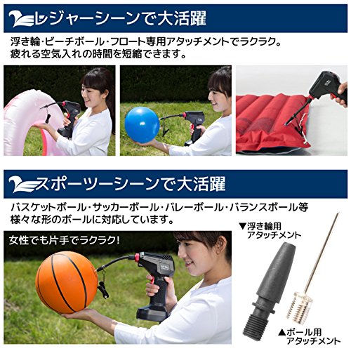 - 自転車タイヤ用/ボール用/ビニール製品用のアタッチメントや収納袋も付いてます