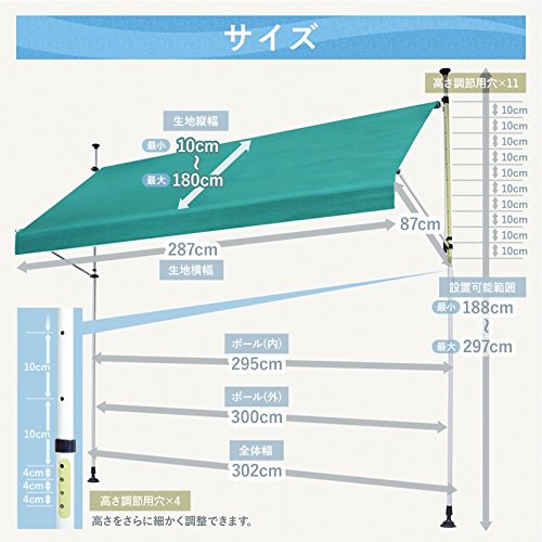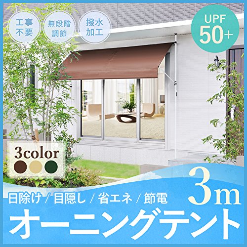 UP STORE 日よけ オーニングテント 幅3m つっぱり式 簡単設置 工事不要 UVカット UPF50+ 雨よけ 撥水加工 組立説明書付属 メーカー保証付 RB-003 (ブラウン)