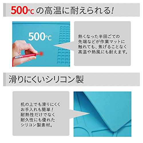 - シリコン製なので500℃の半田ごてが触れてもマットが焦げることはありません