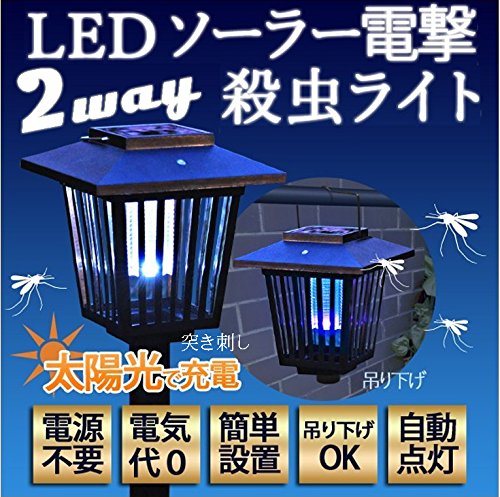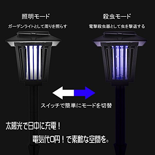 UP STORE ソーラー電源 2way 電撃殺虫器 LEDガーデンライト 殺虫ランタン UV光源吸引式殺虫器 電気代不要 日本語説明書 & 国内メーカー保証付き