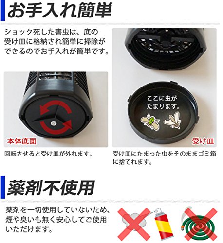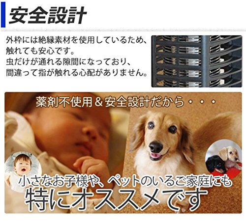 - 電撃音が静かで、就寝時でも使いやすい電撃殺虫器。薬を使わず、無毒無臭、安心無害!