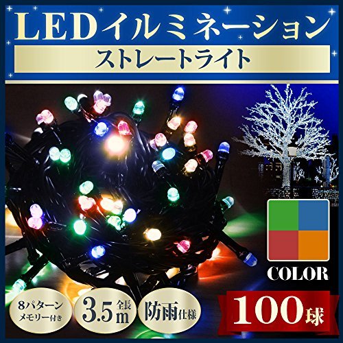LED イルミネーション ライト リモコン付属 屋外屋内兼用 防雨仕様 点灯パターンメモリー機能付 連結可能 (100球セット, 4色ミックス)
