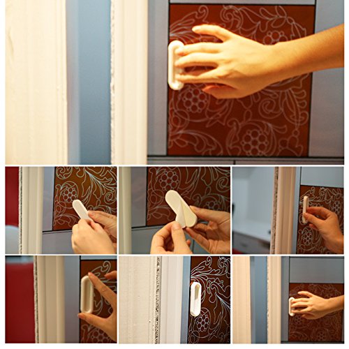 - 食器棚のガラス窓やアルミサッシ窓などにも応用できる引き戸開閉補助具