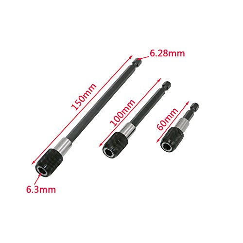 六角軸 延長ビット シャンク ソケット電動ドライバー インパクト 工具 延長 バー 60mm 100mm 150mm 3種類セット (1/4インチ 6.35mm)