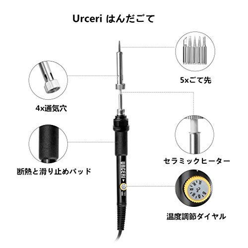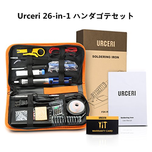 URCERI はんだごて ハンダゴテ 26セット 温度調節機能 200~450℃ 15秒で使える! はんだごて台 交換コテ先 収納ケース 携帯修理ツール付き DIY 電子作業 溶接 機器修理など PSE認証済み【一年保証】