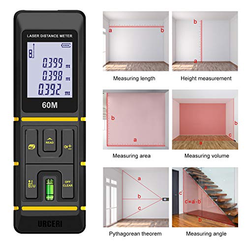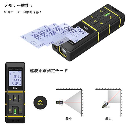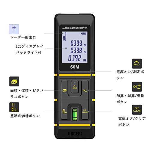 URCERI レーザー距離計 距離測定器 Z1 最大測定距離60m 校正機能 多種類モード 距離 面積 体積 ピタゴラス 自動計算 超小型 携帯便利 レーザークラス2【一年保証】
