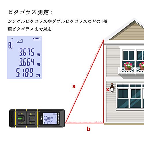 - 【作業に応じて選べる多種類モード】単一距離、連続距離、面積、体積、ピタゴラス(4種類)と加算・減算の6種モード。部屋、工場、倉庫や道路などの作業場所に応じて切り替え可。