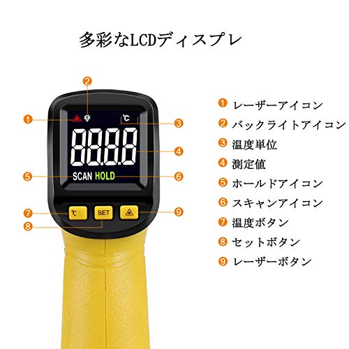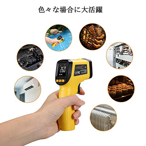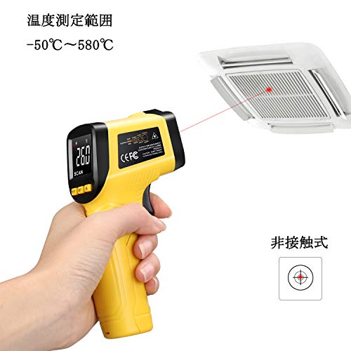 - 【非接触に最大580℃計測】対象物を触れずに、 -50℃から580℃までの温度を計測可能。衛生的に直接触れられない料理や危険な作動中の高温な機械なども対応。レーザークラス2