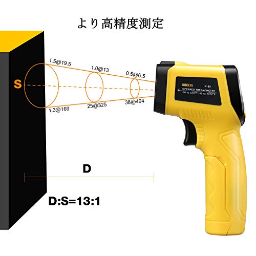 URCERI 工業用温度計 赤外線放射温度計 IR-89-50℃〜580℃ 非接触 放射率可変 1秒瞬間計測 オーバーレンジ表示 D:S=13:1 料理 工業 修理などに レーザークラス2【一年保証】