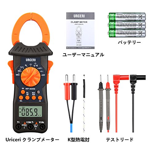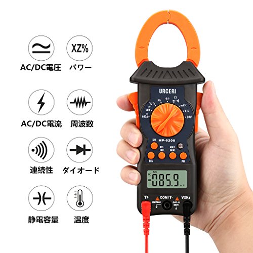 URCERI クランプメーター クランプテスター 6000カウント 自動レンジ 電流 電圧 抵抗 静電容量 周波数 温度 ダイオード 導通テスター 【一年保証】
