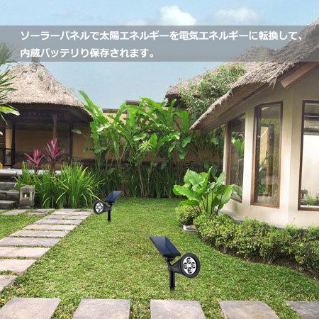 - 【ソーラーガーデンライト:】パワーLEDが玄関まわりのアプローチや植栽を広く明るく照らします。地面に挿し込むだけの簡単設置です。