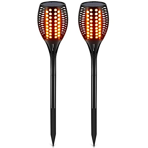 ガーデンライト 防水 96led ソーラーライト パスライト 防犯ライト 外灯 アウトドアライト フリッカー フレームライト トーチライト スポットライト 夜間自動点灯 太陽発電 揺れる炎 自動点灯消灯 車道、玄関先、植え込み、歩道、芝生、庭、ガーデン、屋外などに適応 電球色 (2)