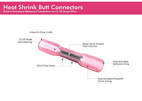 ポリオレフィン熱収縮突合せコネクター、22 – 18ゲージ、レッド防水圧着端子 – バッグの100個
