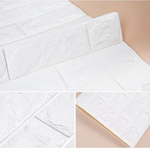 USM STORE ブリック タイル レンガ 壁紙シール 70cm×77cm ブリックステッカー 軽量レンガシール 壁紙シール アクセントクロス ウォールシール はがせる 壁シール (お得10枚セット, ホワイト)