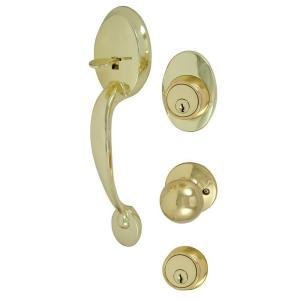 - Ultra Hardware 45027 Cheltenham Entry and Double Cylinder Deadbolt, Polished Brass Handle Set Kw1