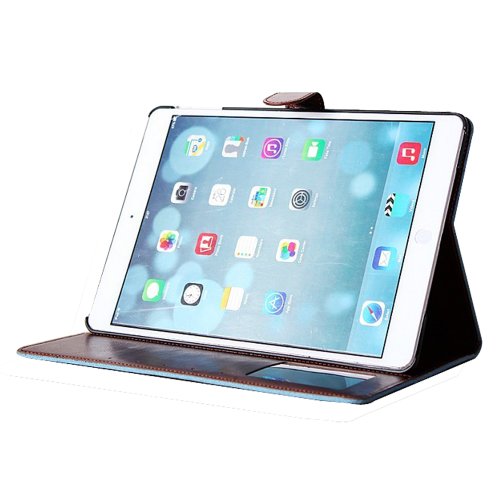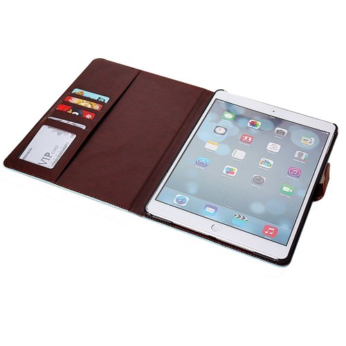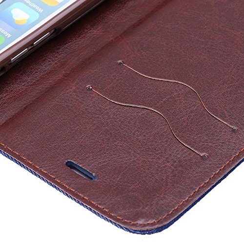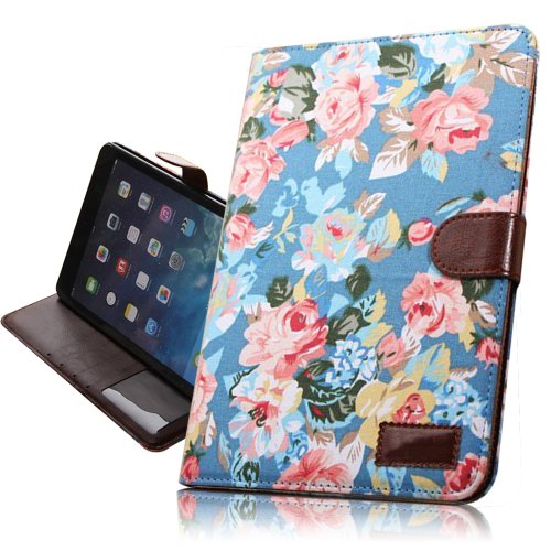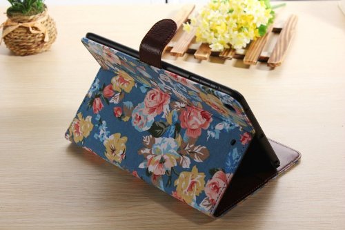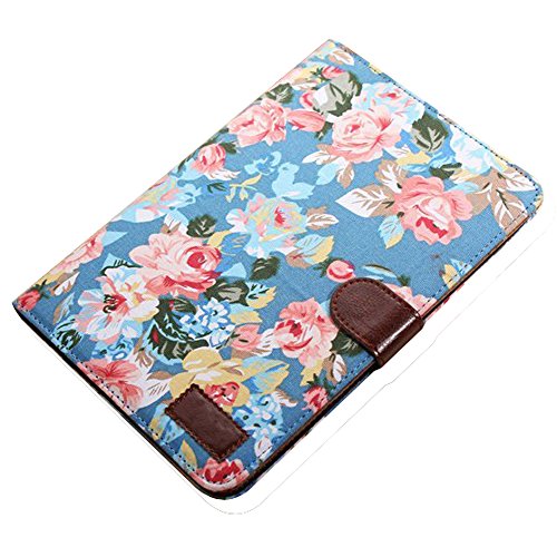 UmingR 花布シリーズブルームローズジャンファブリック布スタイルスプライスヒットカラースタンドホルダーハンドフリーウォレットの携帯電話ケースカバーバッグにカラフルな柄の描画を印刷PU素材縫うフリップホルスター - ( IPad Air2 IPad 6 IPadAir2 IPad6 | 青 開花 )