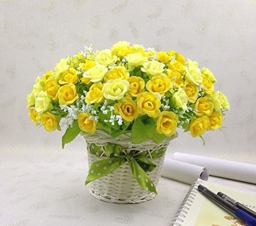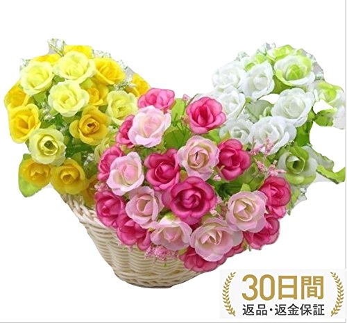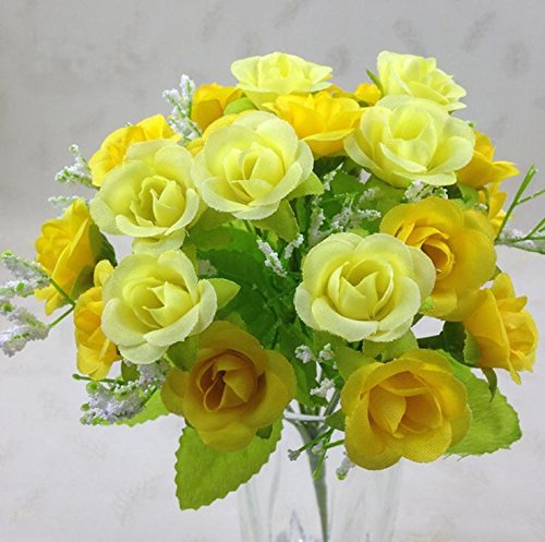 【Umitanus】バラ 造花 茎付き ローズブーケ 結婚式 バラ21個/1束 2個以上の購入で割引 返品・返金保障付き (イエロー)