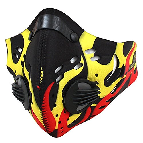 Umora PM2.5対策マスクN95型マスク 排気弁 花粉対応 戸外運動 アウトドア バイク フィルター 防塵 排気ガス防止 通気 繰り返し使用 (火炎 レッド)