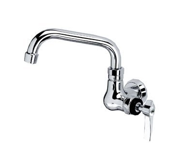 Single Wall Mount Faucet, 12" long swing spout, 1/2" NPS male inlets, 1/4" NPT union tailpiece, internal check valve, anti-splash aerator.
