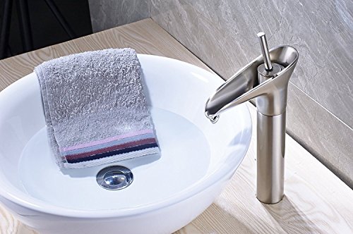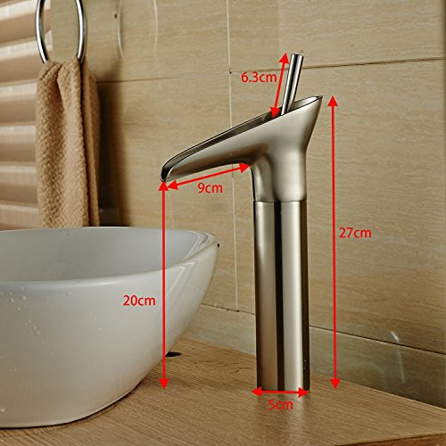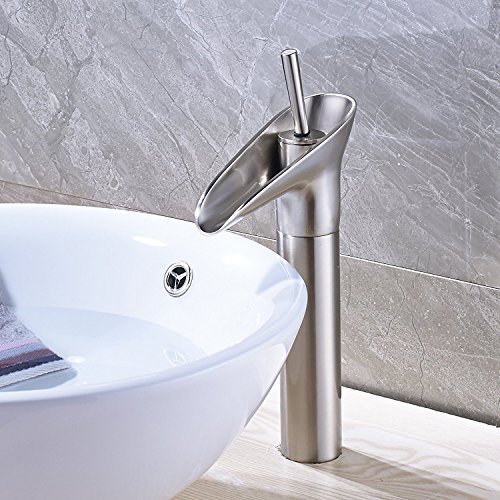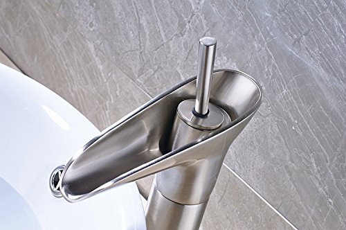 (Brushed Nickel) Rozin Countertop Faucet Single Hole Deck Mounted Vessel Sink Waterfall Mixer Tap(アンティークブラス)Rozinカウンタートップ蛇口シングルホールデッキマウントされた船舶シンクWaterfall Mixer Tap (Brushed Nickel) [並行輸入品]