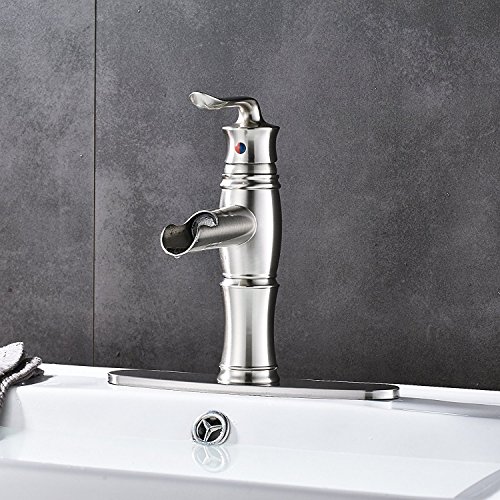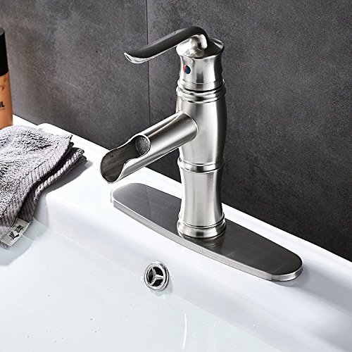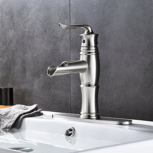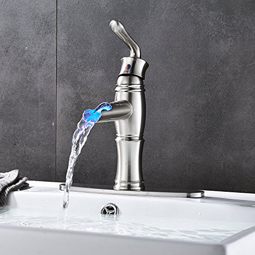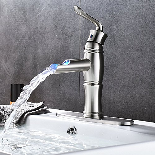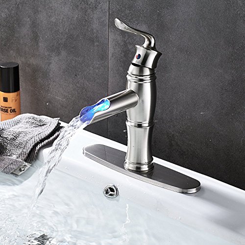 (Brushed Nickel) Votamuta Single Lever Bathroom LED Spout Basin Sink Faucet with Cover Plate(ニッケルメッキ)Votamuta Single Lever浴室LED Spout Basinシンク蛇口カバー付き (Brushed Nickel) [並行輸入品]