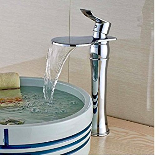 Senlesen Single Lever Waterfall Spout Bathroom Vessel Sink Faucet Hot Cold Lavatory Mixer Tap Tall Body with Pop Up DrainSenlesenシングルレバーウォーターフォールスパウトバスルームシンク蛇口ホットコールドトイレミキサータップボディーポップアップドレン付き [並行輸入品]