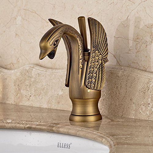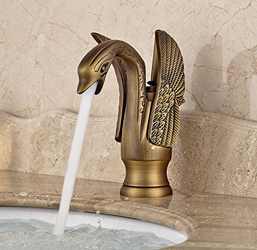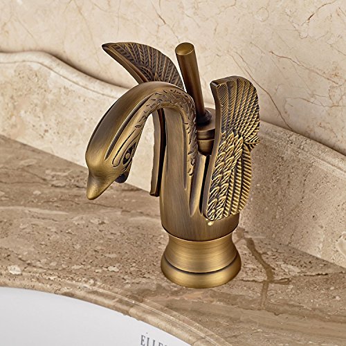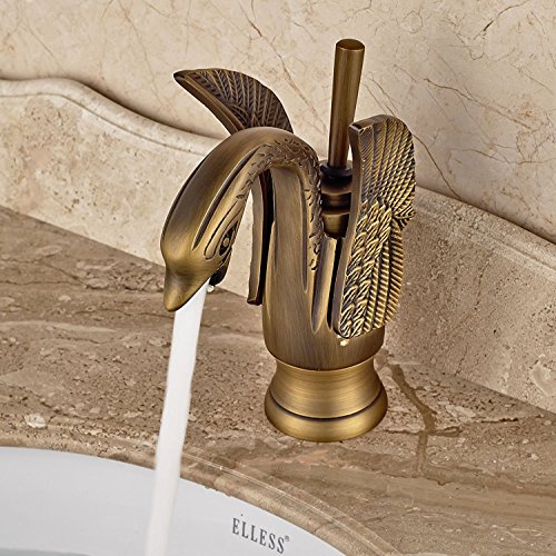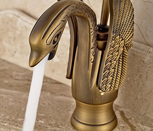 Function:Bathroom Sink Faucet Material:Solid Brass;Finish:Antique Brass Overall Height:18.5cm(7.28") Spout Height:11cm (4.33") With two pipes for cold and hot water Rozin Antique Brass Swan Shape Single Lever Bathroom Sink Faucet Deck Mount Mixer Tap