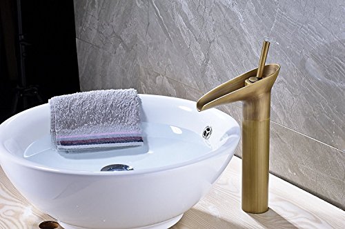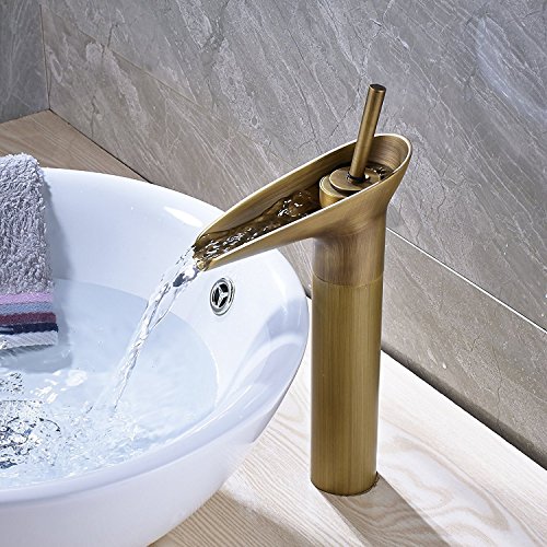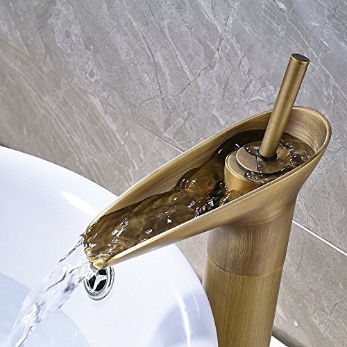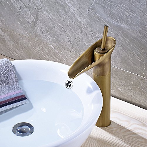 (Antique Brass)Rozin Countertop Faucet Single Hole Deck Mounted Vessel Sink Waterfall Mixer Tap(アンティークブラス)Rozinカウンタートップ蛇口シングルホールデッキマウントされた船舶シンクWaterfall Mixer Tap [並行輸入品]