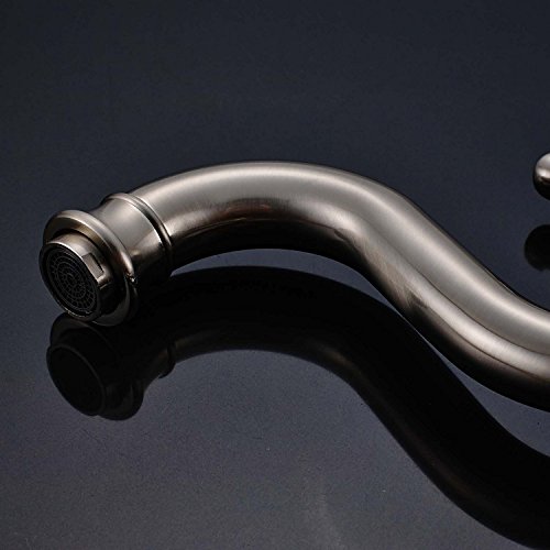 Type::Bathroom Sink Faucet Material:Solid Brass Finish:Brushed Nickel Overall Height:32cm(12.6") Spout Height:23cm (9") Spout Reach:14cm(5.5") Valve Type:Cearamic Drain Included:No With two hoses for cold and hot water