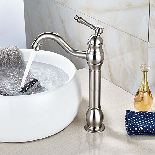 (Brushed Nickel)Rozin Deck Mount Bathroom Vessel Sink Faucet Single Lever Countertop Mixer Tap(ブラシ付きニッケル)ロージンデッキマウントバスルームシンク蛇口シングルレバーカウンターミキサータップ [並行輸入品]