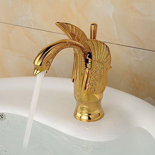 (Gold Polished)Rozin Swan Design Single Hole Bathroom Basin Faucet One Lever Vanity Sink Mixer Tap(Gold Polished)RozinスワンデザインシングルホールBathroom Basin Faucet One Leverバニティシンクミキサータップ [並行輸入品]