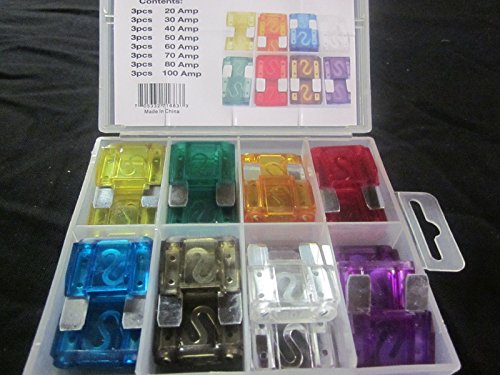 Largeヒューズ24個詰め合わせマキシ自動車ヒューズ20 Amp – 100 Amp車トラックRV etc