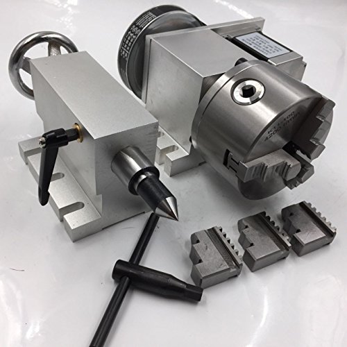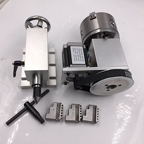 4th Rotary Rotational Axis Hollow Shaft 3 Jaw 100mm Tailstock NEMA23 CNC Router 第4ロータリー回転軸中空軸3ジョー100mmテールストックNEMA23 CNCルーター [並行輸入品]