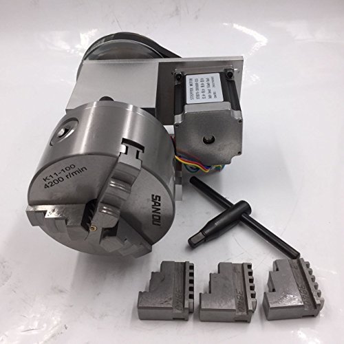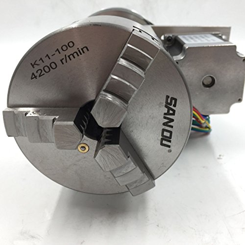 Model Number :K11-100 Chuck: K11 100MM 3-jaw chuck hollow shaft Center height: 65MM The output diameter of shaft: 21mm Angle: 0.3 degrees / step Speed reducing ratio: 6:1 (Synchronous belt) Stepper motor: Two phase 57 NEMA23 stepper motor Size: 210MM*168MM*115MM