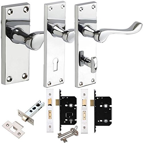 Victorian Scroll Polished Chrome Door Handle Pack Mortice Latch Lock Bathroom in Home & Garden, Home Improvement, Building & Hardware, Doors & Door Hardware, Door Knobs & Levers